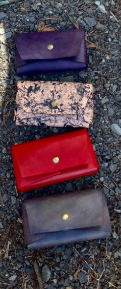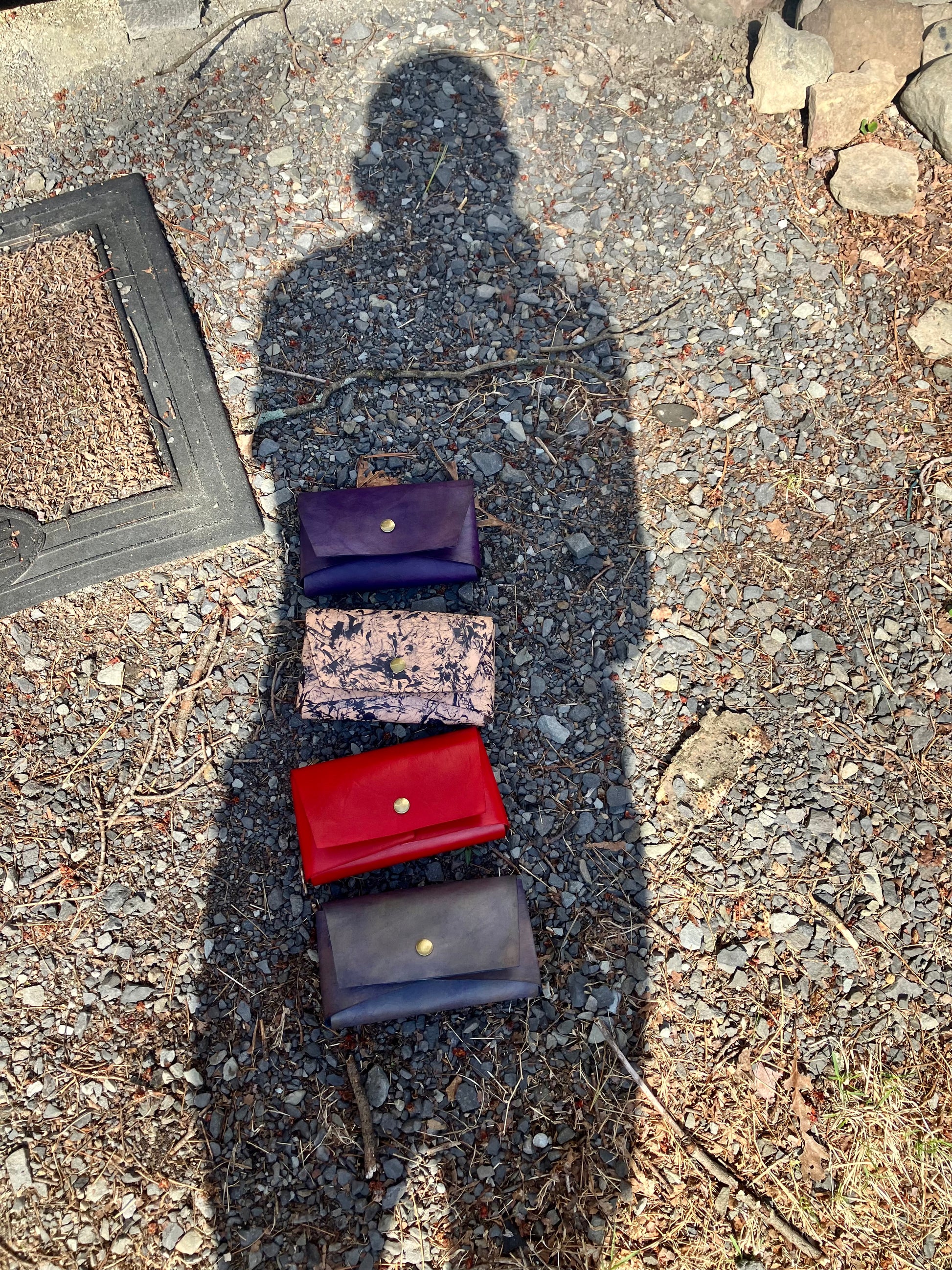 these handmade leather envelope pouches with antique brass magnetic snaps are useful and lovely— vegetable tanned leather, hand cut/dyed/finished. 5.5x3.75”. will fit a standard Rider/Waite/Smith tarot deck, smaller thoth deck, other similar sized decks, and/or other curiosities :)